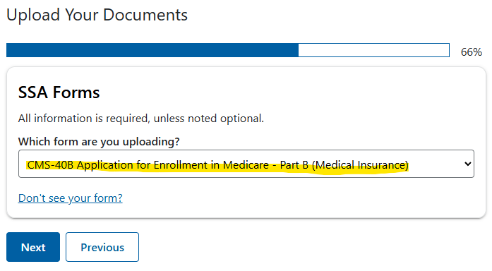 Step 2: Choose “SSA Form” as the type of document you will upload